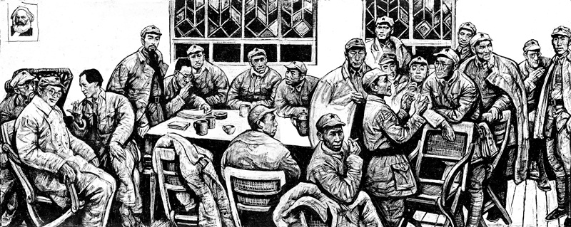??本部分內容為沈堯伊編繪的《西征·東歸》《火種記》《落腳點》三部作品,名為《征路星火》。本單元從全集的600幅作品中精選展出75幅。