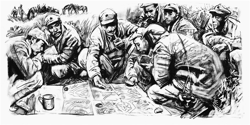 ??本部分從全集中精選出127幅作品,涵蓋了長征途中的重要歷史事件,包括血戰(zhàn)湘江、遵義會議、四渡赤水、巧渡金沙江、飛奪瀘定橋、會師夾金山、草地徒步、會師北上等內容。