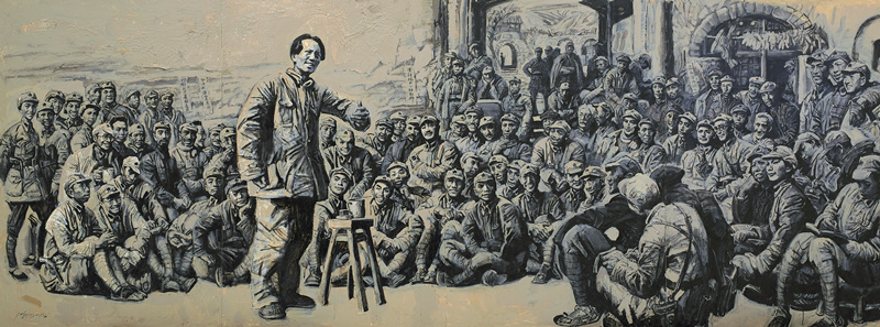 《長征是宣言書、宣傳隊、播種機》油畫 220cmx600cm 2013年 沈堯伊