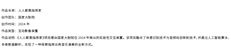 ??藝術(shù)與數(shù)字技術(shù)如同一對交織共生的伴侶,共同孕育出璀璨奪目的繁花。表演藝術(shù)與數(shù)字技術(shù)的有機(jī)結(jié)合將使觀眾能夠更加直觀地感受到藝術(shù)與現(xiàn)實世界的交互,體驗到虛擬與現(xiàn)實無縫融合的奇妙。數(shù)字交互體驗和AIGC算法的升級,將使藝術(shù)作品更加智能化和個性化,觀眾可以深度參與并且表達(dá)自己的喜好和情感,與藝術(shù)作品進(jìn)行互動,甚至參與獨一無二的藝術(shù)創(chuàng)作過程。