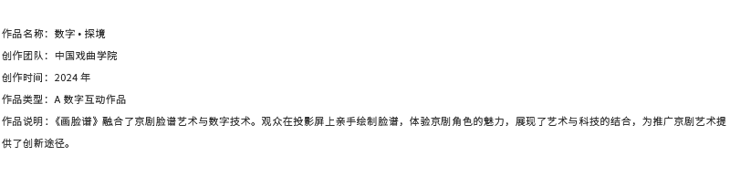??本次展覽以“藝象新生”為主題,借助現(xiàn)代科技的力量,對(duì)音樂、舞蹈、戲曲、話劇等表演藝術(shù)進(jìn)行重新詮釋。展覽通過數(shù)字技術(shù)這座橋梁,打破時(shí)空的界限,讓古今藝術(shù)在瞬間交融,觀眾將在有限的空間內(nèi),體驗(yàn)到跨越四海的藝術(shù)精華。本次展覽精心策劃,匯聚了眾多科技與藝術(shù)交融的創(chuàng)新杰作。從沉浸式的互動(dòng)影像裝置到智能AI驅(qū)動(dòng)的虛擬人物,從立體全息投影到震撼的裸眼3D視覺藝術(shù),每一項(xiàng)展示都是對(duì)傳統(tǒng)藝術(shù)形式的現(xiàn)代演繹,讓經(jīng)典之美在數(shù)字時(shí)代煥發(fā)出新的生命力。通過數(shù)字技術(shù)的加持,我們將表演藝術(shù)以全新的形式呈現(xiàn)于世,不僅重現(xiàn)了經(jīng)典之美,更賦予了它們新的時(shí)代內(nèi)涵。這是《藝象新生》展覽的緣起,也是我們對(duì)傳統(tǒng)文化深深的敬意和對(duì)未來無限憧憬的體現(xiàn)。