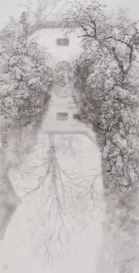 ??王明明推出了大型園林系列畫展,這是中國畫壇的一大盛事??赐晁漠嬜?,很難平靜。我心里堆積著很多東西,到底是什么呢?我很難說清。