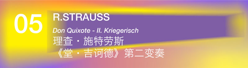 ??樂曲全稱為《堂·吉訶德(引子、主題與變奏曲以及終曲),一個(gè)騎士性格主題的幻想變奏曲》,取材于16世紀(jì)西班牙作家塞萬提斯的同名小說。整部作品是一套交響變奏曲,同時(shí)亦可視作大提琴協(xié)奏曲。第二變奏,描寫堂·吉訶德看到一群悠閑地吃草的綿羊,卻誤以為是一整支疾馳的敵軍,而展開瘋狂的追擊。音樂中可聞滑稽變形的進(jìn)行曲、羊群的慘叫、桑丘的驢嚎……直到牧羊人用石頭狠狠地打到堂·吉訶德的腦袋時(shí),他才清醒過來,而停止這場幻想中的打斗。