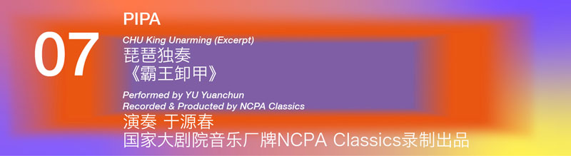 ??《霸王卸甲》,著名的古代琵琶大套武曲,全曲共分十六段。這段選曲以“楚歌”、“別姬”為中心。在“楚歌”中琵琶用長輪的手法奏出凄涼悲切、令人肝腸寸斷的曲調(diào)。接著“別姬”則以急促的歌唱性的音樂和用推音奏出的滑音,和“楚歌”相呼應(yīng)?!栋酝跣都住泛汀妒媛穹吠瑯佣际侨〔挠诔h相爭的垓下之戰(zhàn)。不同的是,《十面埋伏》的主角是劉邦,而《霸王卸甲》的主角是項(xiàng)羽,表現(xiàn)出楚霸王這個(gè)“力拔山兮氣蓋世”的歷史人物在四面楚歌中的無奈與感慨,從而訣別虞姬,意欲自刎的悲壯。