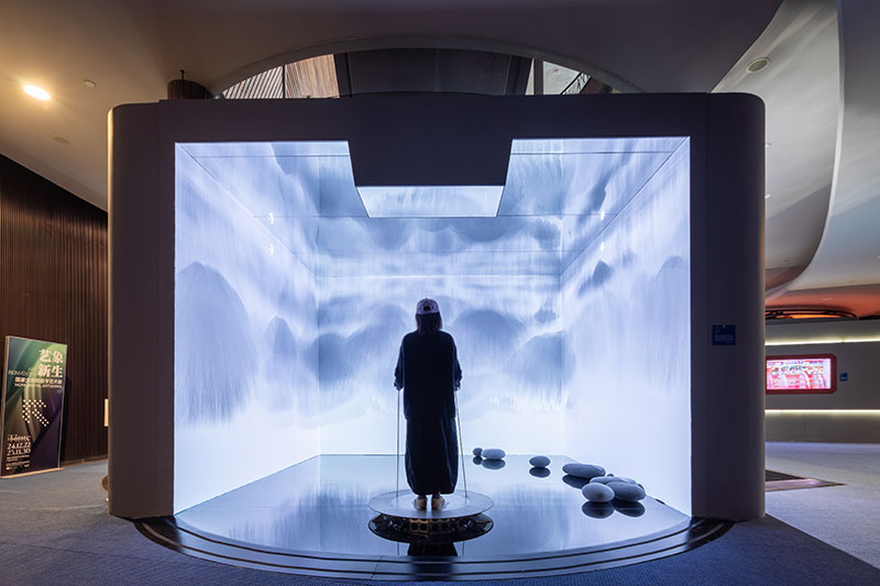 作品名稱:情緒劇場·山水心境 創(chuàng)作者:費俊 劉政奎 作品類型:互動影像獲置 創(chuàng)作時間:2024年 作品說明:《情緒劇場》是藝術(shù)家費俊與心理學(xué)家劉正奎合作的系列藝術(shù)實驗項目之,這個跨學(xué)科項目研究以藝術(shù)與科技融合的方式來介入心理療愈。