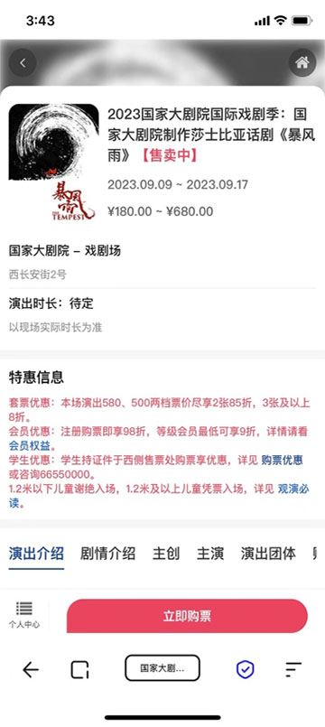 ??2、進(jìn)入演出詳情頁(yè),點(diǎn)擊“立即購(gòu)票”按鈕。