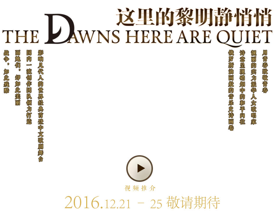 歌劇《這里的黎明靜悄悄》是國家大劇院為紀(jì)念“世界反法西斯戰(zhàn)爭”勝利七十周年所作的中國原創(chuàng)歌劇。原著是前蘇聯(lián)著名作家鮑里斯·利沃維奇·瓦西里耶夫的小說,小說以浪漫主義與現(xiàn)實(shí)主義相結(jié)合的手法,講述了幾個(gè)女兵在二戰(zhàn)中抗擊德國侵略者的故事,謳歌了她們堅(jiān)貞樂觀的性格和勇于犧牲的精神。