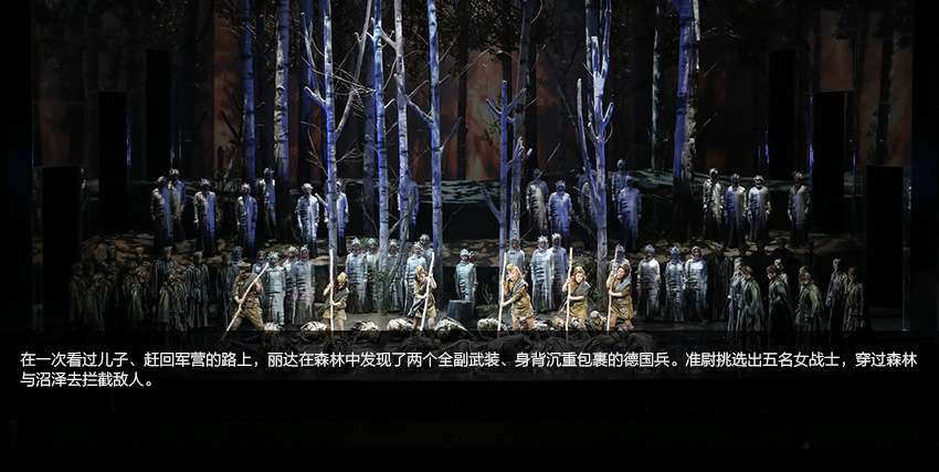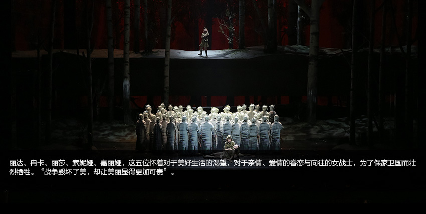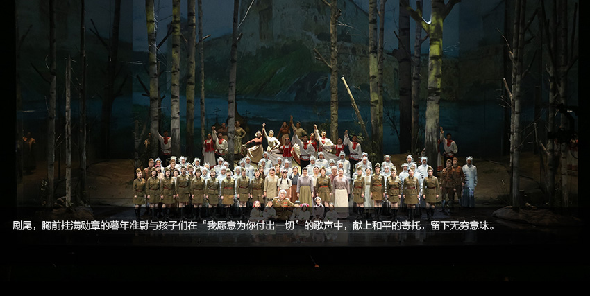 這是一出聽不到槍聲甚至看不到敵人的戰(zhàn)爭戲劇,有的只是充滿詩意想象的情景和堅(jiān)持經(jīng)典品味的音樂,當(dāng)然還有一群才華橫溢的年輕藝術(shù)家在這樣的情景中對(duì)這樣的音樂的傾情演唱,還有那片有生命的、能移動(dòng)的,唱著時(shí)而渾厚時(shí)而激烈時(shí)而深情時(shí)而華麗的合唱的那一大片“白樺林”……