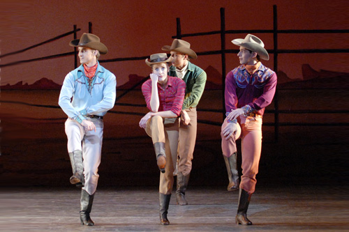 《牛仔競技》由3個風(fēng)格各異的現(xiàn)代作品組成,體現(xiàn)了濃郁的“美國風(fēng)格”;《你的眼神讓我沉醉》在頗具懷舊風(fēng)味的美國爵士藍調(diào)音樂中上演醉人情歌;《摩爾人的帕凡舞》是美國現(xiàn)代舞的代表作之一,以獨特的視角演繹了《奧賽羅》的故事;由音樂大師科普蘭作曲的《牛仔競技》更是一部難得一見的作品,用幽默、開朗、熱情的舞蹈,描繪了“牛仔”這一美國文化符號。
