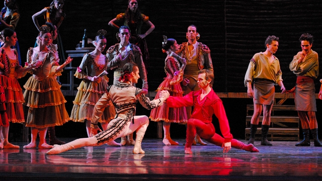 根據(jù)著名同名歌劇改編的芭蕾舞劇《卡門》塑造了一個美麗而倔強的吉卜賽姑娘——煙廠女工卡門??ㄩT在一次和其他女工的斗毆中遭遇了騎兵隊班長唐·何塞。本欲逮捕卡門的唐·何塞被她野性的美貌和桀驁不馴的氣質所吸引,不但放走了卡門,還與她墜入情網(wǎng)。之后在卡門的誘惑下,他又加入了卡門所在的走私販行列。好景不長,卡門后來又愛上了斗牛士埃斯卡米羅,就在她為埃斯卡米羅斗牛勝利而歡呼時,卻死在了嫉妒成狂的唐·何塞的劍下……