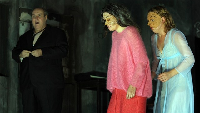 導(dǎo)演亨克爾著重刻畫了兩個(gè)女人間的戰(zhàn)爭(zhēng)。茱莉亞·魏寧格和莉娜·貝克曼打扮得像故事書中的女巫,在情感的表現(xiàn)上如同兩輛“怪獸卡車”。二人頭發(fā)蓬亂,身著睡衣(服裝設(shè)計(jì):妮娜·馮·梅肖),以不可思議的昂揚(yáng)斗志在各種對(duì)彼此的無(wú)視和怠慢中游走著。尖酸刻薄的言語(yǔ)攻擊、怪異可笑的舞蹈、威脅性的叫罵、抽搐似的扭動(dòng)以及許多荒誕戲中的表現(xiàn)手法輪番上演。