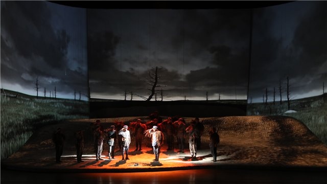 第二幕中彭政委的一段詠嘆調(diào)。在慘烈的湘江之戰(zhàn)間隙,面對經(jīng)過激烈戰(zhàn)斗而疲憊不堪、睡著了的紅軍戰(zhàn)士們,彭政委抒發(fā)著對英勇士兵的無限贊美和感慨,音樂抒情而充滿力量,節(jié)奏變化豐富,展現(xiàn)出紅軍不懼強敵、不怕失敗的英雄氣概。