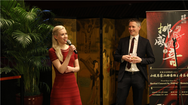 ??當晚的演出曲目包括極具挪威民族特色的哈林舞曲,以及愛德華·格里格、奧勒·布爾,尤金·伊薩伊和譚盾等藝術(shù)家的代表作。挪威王國駐華大使館臨時代辦羅思拓先生出席演出前招待會并觀看演出。