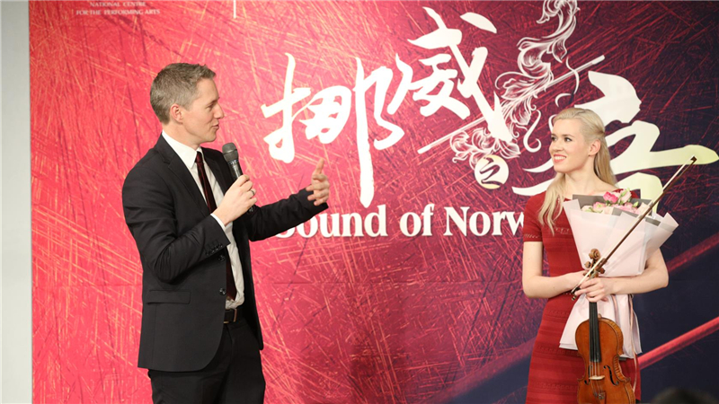 ? 2019年1月15日晚,國家大劇院與挪威王國駐華大使館聯(lián)合舉辦的“世界音樂博覽第121期:挪威之音——小提琴家漢姆茜獨奏音樂會”在新聞發(fā)布廳成功舉辦。