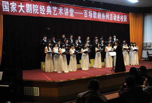 由國(guó)家大劇院與“教育部、文化部、財(cái)政部”共同合作的“高雅藝術(shù)進(jìn)校園——北京高校學(xué)生走進(jìn)國(guó)家大劇院”活動(dòng),于3月13日下午2點(diǎn)半以“國(guó)家大劇院經(jīng)典藝術(shù)講堂——百場(chǎng)歌劇系列活動(dòng)進(jìn)校園”的形式拉開帷幕。這既是今年“經(jīng)典藝術(shù)講堂”走出劇院的首場(chǎng)活動(dòng),也為即將到來的第五屆國(guó)家大劇院“歌劇節(jié)”奏響了序曲。