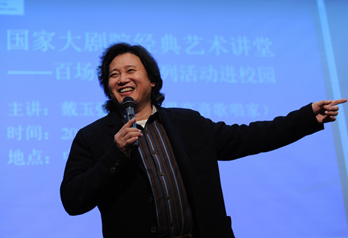 著名男高音歌唱家戴玉強(qiáng)為大學(xué)生們講起歌劇 羅曉光/攝