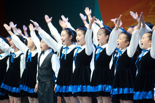 光明小學(xué)合唱團(tuán)在“我的夢想——首都青少年文藝展演”中 肖一/攝