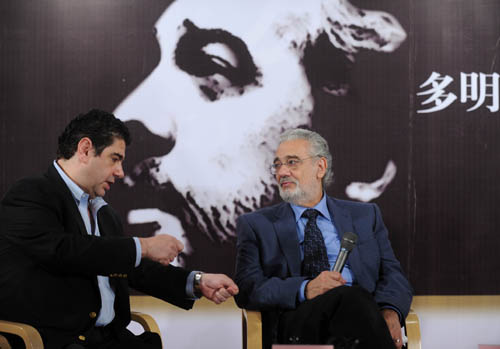 普拉西多·多明戈與兒子阿爾瓦羅·多明戈在新聞發(fā)布會(huì)上 羅曉光/攝