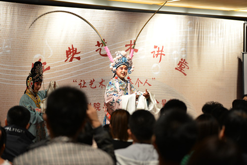 一個半小時的活動漸入尾聲,蘇東花和觀眾們都興致盎然。能受邀舉行這樣的講座,蘇東花也非常高興,“戲曲學院多年來致力于培養(yǎng)不同劇種的藝術(shù)人才,這次演出也充分反映出大劇院對傳統(tǒng)藝術(shù)、對藝術(shù)院校的支持,希望能有更多人關(guān)注、喜歡戲曲藝術(shù)?!?nbsp;