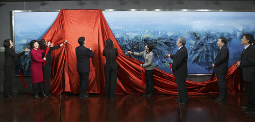 大型音樂(lè)主題油畫《天水奏鳴》由大劇院委托畫家稀朗創(chuàng)作,油畫長(zhǎng)8米、寬2米,描繪了自然和生命的和諧。此后,這幅油畫將一直陳列于國(guó)家大劇院小劇場(chǎng)前廳向公眾展示。