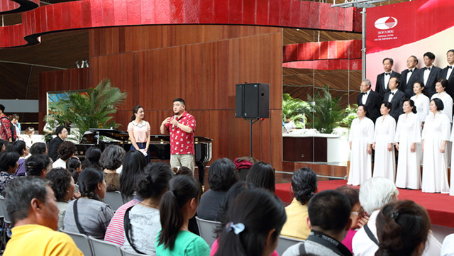 歌劇節(jié)主題觀摩期間,除了“歌劇1+1”,大劇院還準(zhǔn)備了上百場“空間主題藝術(shù)演出”。當(dāng)天,西咖啡廳旁就上演了3場“空間主題藝術(shù)演出”,觀眾不僅能免費(fèi)欣賞到歌劇詠嘆調(diào)演出和室內(nèi)樂表演,還能在互動(dòng)活動(dòng)中學(xué)習(xí)到歌劇知識(shí)和觀演禮儀。同時(shí),大劇院異彩紛呈的展覽也讓人目不暇接,5月18日開幕的《交響·融合——姜國芳紫禁城系列作品展》將展出“發(fā)現(xiàn)紫禁城第一人”的姜國芳八十余幅繪畫作品,觀眾不僅能一睹四十余幅極具代表性的紫禁城系列油畫“芳容”,而且有機(jī)會(huì)欣賞姜國芳捐贈(zèng)給國家大劇院的世界十大指揮家油畫肖像。