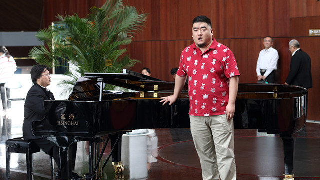 歌劇《洪湖赤衛(wèi)隊(duì)》中的《放下三棒鼓拿起紅纓槍》、歌劇《卡門》中的《波西米亞人之舞》、《讓我們蕩起雙漿》……每首曲目都聲情并茂,動(dòng)人傳神。尤其是《放下三棒鼓拿起紅纓槍》中“洪湖水啊,浪打浪”,沁人心脾的歌聲不僅讓人回味無窮,更讓人對(duì)6月28日至7月1日即將在大劇院上演的《洪湖赤衛(wèi)隊(duì)》滿懷期待。最后,在大家的熱烈掌聲中,關(guān)老師更是“化身”楊白勞,獻(xiàn)上歌劇《白毛女》中的精彩選段《千里風(fēng)雪一片白》,將現(xiàn)場氣氛推向最高潮。