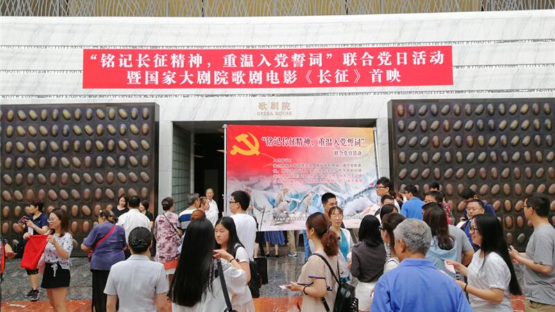 ??為慶祝中國共產(chǎn)黨建黨96周年,結(jié)合當(dāng)前“兩學(xué)一做”學(xué)習(xí)教育常態(tài)化、制度化要求,中共北京市直屬機關(guān)工委、共青團北京市委、國家大劇院、中共豐臺區(qū)委組織黨員干部聯(lián)合開展主題黨日活動?;顒庸灿?場,分別安排在7月1日上午和7月3日全天,市直機關(guān)基層黨組織代表、高校學(xué)生黨員代表、豐臺區(qū)部分學(xué)校師生代表、國家大劇院及合作單位中國銀行、海航集團黨組織代表等近3000人,將通過觀看國家大劇院歌劇電影《長征》,重溫革命歷史,銘記長征精神。