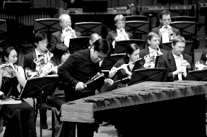 (記者 李澄)9月27日晚,伴隨著法國作曲大師杜卡的芭蕾音樂《仙女》中的開篇號角,為期9天的國家大劇院第二屆國際打擊樂節(jié)拉開序幕。有著“亞洲打擊樂第一人”之稱的打擊樂演奏家李飚,攜手世界頂級管樂團(tuán)德國薩克森萊比錫管樂團(tuán)以及北京管樂團(tuán)共同為觀眾帶來了一個別開生面的夜晚。