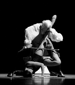 在人們的印象里,選用古典音樂(lè)為配樂(lè)的當(dāng)代芭蕾作品,往往以無(wú)情節(jié)方式呈現(xiàn),然而杜阿多在創(chuàng)作《舞之巴赫》時(shí),并未落進(jìn)這個(gè)窠臼中。他讓“巴赫”登上舞臺(tái),全劇主角便是巴赫本人。一位男性舞者戴著古典西方宮廷所特有的白色假發(fā),穿著一襲17世紀(jì)的貴族禮服,手拿指揮棒,在舞臺(tái)上揮灑自如。其他舞者則是小提琴、鋼琴、管風(fēng)琴,是交響樂(lè)團(tuán)里的每件樂(lè)器,他們還是音符,是旋律,是樂(lè)句,在“巴赫”操控下,時(shí)而是溫婉浪漫的音樂(lè)小品或樂(lè)器獨(dú)奏,時(shí)而又是激情昂揚(yáng)、氣勢(shì)恢弘的交響樂(lè)合奏,讓人用眼睛“聽(tīng)”到了音樂(lè)。