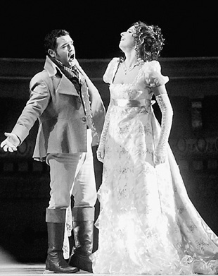 國(guó)家大劇院和廣州大劇院選擇了《圖蘭朵》作為歌劇演出的起步,恐怕都出于對(duì)這部作品知名度的考慮,推廣宣傳比較省力。但他們對(duì)《托斯卡》的投入,則是看中了其中的藝術(shù)魅力。除了舞臺(tái)震撼人心、人物性格鮮明、故事一波三折外,每一幕還有膾炙人口的詠嘆調(diào),《奇妙的和諧》、《為藝術(shù),為愛情》和最為經(jīng)典的《今夜星光燦爛》,都是歌劇學(xué)子的必修課,也是多明戈、卡雷拉斯等大師的成名之作,更標(biāo)志著普契尼創(chuàng)作生涯中的高峰。