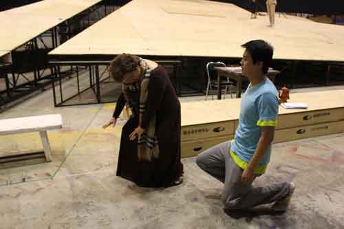 在國家大劇院的排練中,張英席演的趙武是全劇中的核心人物,為了這個趙氏孤兒能存活下來先后有八個人都付出了生命。在戲中,張英席有很多單膝跪地的戲份,因此不得不戴上護膝。而七十多歲的陳薪伊導(dǎo)演在說戲時更是親自跪地示范動作,歌劇中導(dǎo)演、編劇和作曲家等藝術(shù)家前輩們的敬業(yè)與刻苦精神也深深打動、鼓舞著張英席。