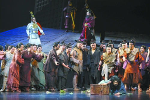 《趙氏孤兒》是中國傳統(tǒng)的經(jīng)典戲劇題材,曾經(jīng)被各種藝術(shù)形式廣泛演繹,然而改編成歌劇卻還是有史以來第一次。由于“趙孤”的故事早已廣為流傳,所以昨晚走進大劇院的觀眾,更多是沖著音樂和舞臺呈現(xiàn)方式來的。