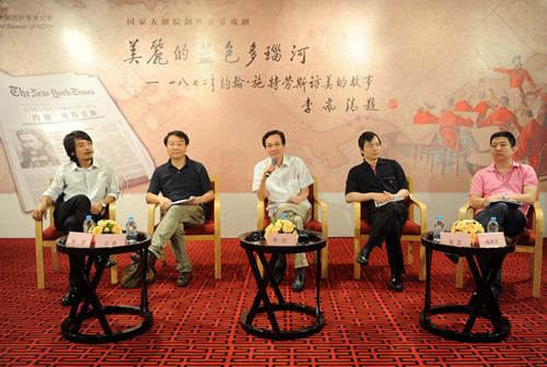 舞美設(shè)計(jì)張武、導(dǎo)演左青、大劇院新聞發(fā)言人鄧一江、
