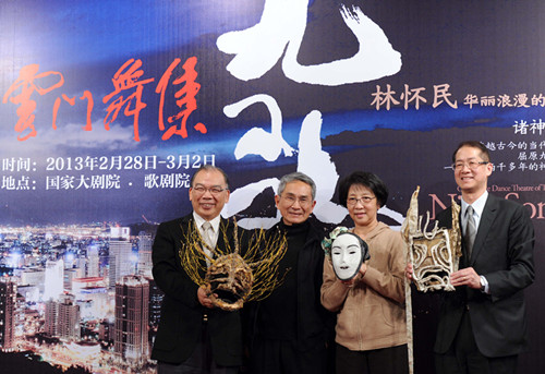 1月21日,國家大劇院為《九歌》演出舉行新聞發(fā)布會,林懷民特意遠道而來親自赴京,同國家大劇院舞蹈藝術總監(jiān)趙汝蘅共同為媒體解讀這部對于“云門”而言有著特殊意義的舞作,長期支持云門舞集的贊助單位國泰金融集團和頂新公益基金會的代表王健源、滕鴻年也共同出席了當天的新聞發(fā)布會。