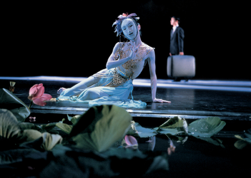 也正是源于這樣的思考,《九歌》的舞臺上一直有一名穿著現(xiàn)代西裝的男子,手里提著旅行的皮箱,打著一把傘,在舞者演出的同時,穿梭于舞臺各個角落。彷佛一直提醒著觀眾:這不是楚辭的《九歌》,這不是文學經(jīng)典的《九歌》,這是云門的《九歌》,是現(xiàn)代人的諸神復活。