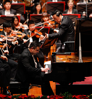 2011年是中國(guó)共產(chǎn)黨建黨90周年,5月1日國(guó)際勞動(dòng)節(jié)當(dāng)天,由國(guó)家大劇院與武警文工團(tuán)共同主辦的大型情景經(jīng)典音樂舞蹈《紅軍哥哥回來(lái)了》在歌劇院隆重首演,率先拉開了大劇院“慶祝建黨90周年百場(chǎng)獻(xiàn)禮演出”的輝煌序幕。與此同時(shí),在大劇院音樂廳內(nèi),一臺(tái)名為“詠動(dòng)中國(guó)”的音樂會(huì)也正在上演,兩位優(yōu)秀的西方音樂家演奏起經(jīng)典的中國(guó)旋律,這場(chǎng)別出心裁的音樂會(huì)為假日增添了別樣的情韻。
