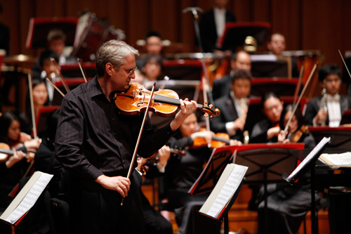 除了《黃河》,另一部幾乎成為中國(guó)音樂圖騰的協(xié)奏曲《梁?!芬苍谝魳窌?huì)的下半場(chǎng)精彩亮相。此番演奏《梁?!返牡つ釥枴どw德曾在維也納愛樂樂團(tuán)任小提琴首席,他對(duì)這部中國(guó)作品的詮釋則別有一番味道。蓋德吐納運(yùn)弓之間展現(xiàn)出極強(qiáng)的功力,高難度的技巧樂句在他的弓弦之上變得寬廣而富有力度,長(zhǎng)句演繹得尤為美妙絕倫,將梁祝相愛、抗婚、化蝶的情感與意境描摹的層次分明,纏綿悱惻。為了能夠原汁原味地演奏出具有濃烈江南韻味的《梁?!?,蓋德研究了很多中國(guó)民族樂器,深入了解了作品中用到的胡琴滑音、抹音,琵琶的滾音,古箏的掃音等一系列中國(guó)式演奏技法。
