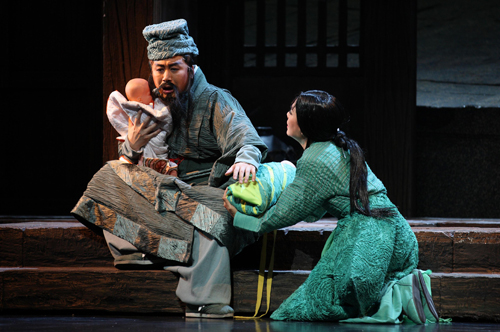 20日晚,除程嬰的戲份貫穿始終外,活躍在國際歌劇舞臺上的三位華裔歌唱家排出了豪華的“綠葉”陣容,雖然戲份不多,但他們深厚的演唱功底和細膩動情的表演將每一位觀眾帶入了那場驚天慟地的悲劇之中。