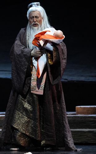 值得一提的是,在《趙氏孤兒》的演出中,國家大劇院合唱團和管弦樂團的表現也可圈可點。經過多部大型歌劇的磨練,兩團無論從專業(yè)技術技巧還是舞臺表現力而言都有了飛速的進步,為整臺演出增色不少。