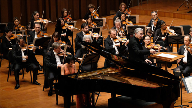 ??上半場(chǎng)第二首作品是由鋼琴家王羽佳、小號(hào)演奏家馬克·伊諾埃與樂(lè)團(tuán)共同演奏的俄羅斯作曲家肖斯塔科維奇《第一鋼琴協(xié)奏曲》。這部作品首演于1933年,此時(shí)的肖斯塔科維奇僅有27歲。作品中,觀眾聽(tīng)到的并非往日里肖斯塔科維奇音樂(lè)嚴(yán)肅、深刻的形象,取而代之的是澎湃的活力與自由的音樂(lè)想象。作曲家將俄羅斯傳統(tǒng)音樂(lè)元素與當(dāng)時(shí)流行于全世界的爵士音樂(lè)相結(jié)合,王羽佳十指在黑白琴鍵上飛速?gòu)椬?,?yīng)對(duì)著技巧與樂(lè)感的雙重挑戰(zhàn),令觀眾大呼過(guò)癮。