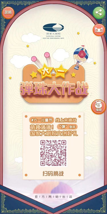 又一個(gè)“六一”兒童節(jié)馬上要到了!國(guó)家大劇院有很多充滿(mǎn)藝術(shù)氣息的文創(chuàng)產(chǎn)品, 想了解它們并收獲一份 屬于自己的2022年兒童節(jié)紀(jì)念么? 國(guó)家大劇院特別策劃了 “六一”兒童節(jié)線上活動(dòng) “彈珠大作戰(zhàn)” 即日起至6月5日參與彈珠挑戰(zhàn),憑借自己的不懈努力贏取的勝利果實(shí)會(huì)更“香”哦! 點(diǎn)擊閱讀原文 掃碼瀏覽
