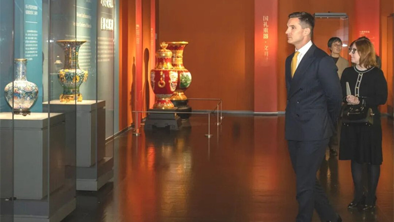 ??到訪期間,白思諦一行參觀了大劇院《景泰藍(lán)傳承與創(chuàng)新藝術(shù)展》,在大劇院XR展廳、錄音棚及導(dǎo)播間沉浸式體驗(yàn)了“科技賦能藝術(shù)”的前沿實(shí)踐成果。