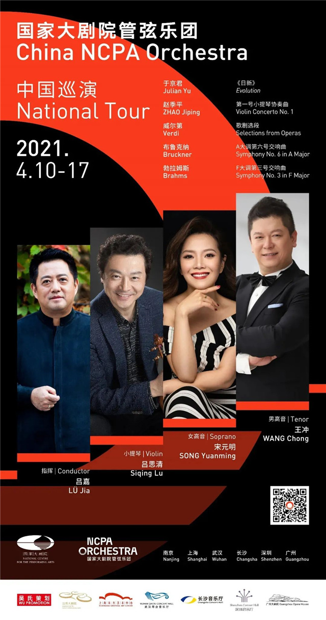 ??4月10日至17日,樂團(tuán)將在音樂總監(jiān)呂嘉帶領(lǐng)下攜手小提琴家呂思清、歌唱家宋元明、王沖,亮相南京、上海、武漢、長(zhǎng)沙、深圳、廣州六城。