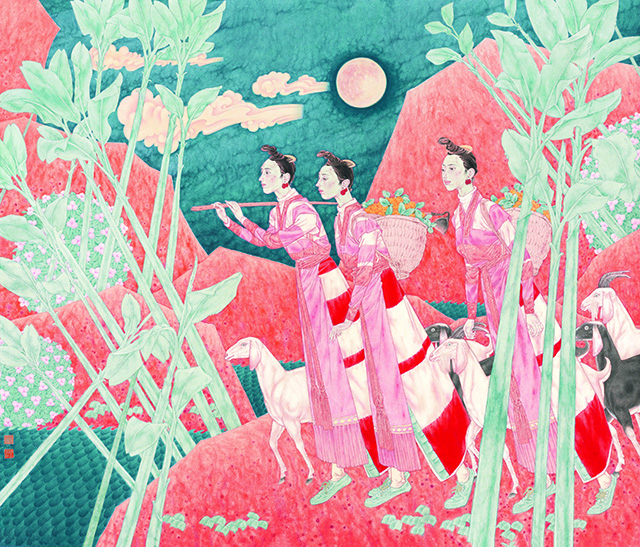 陳孟昕 《月隨人歸》 紙本工筆 130cm×138cm 2022年