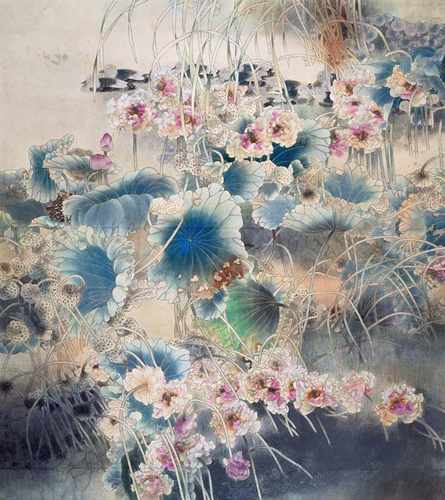 賈廣健 《寒塘幽韻》 紙本工筆 219cm×170cm 2009年