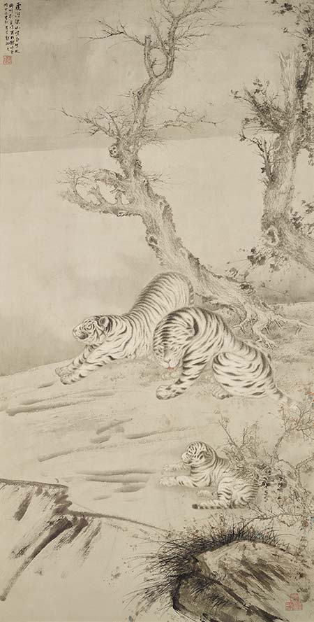 劉萬鳴 《虎嘯生風》240×124cm 紙本設(shè)色 2024年