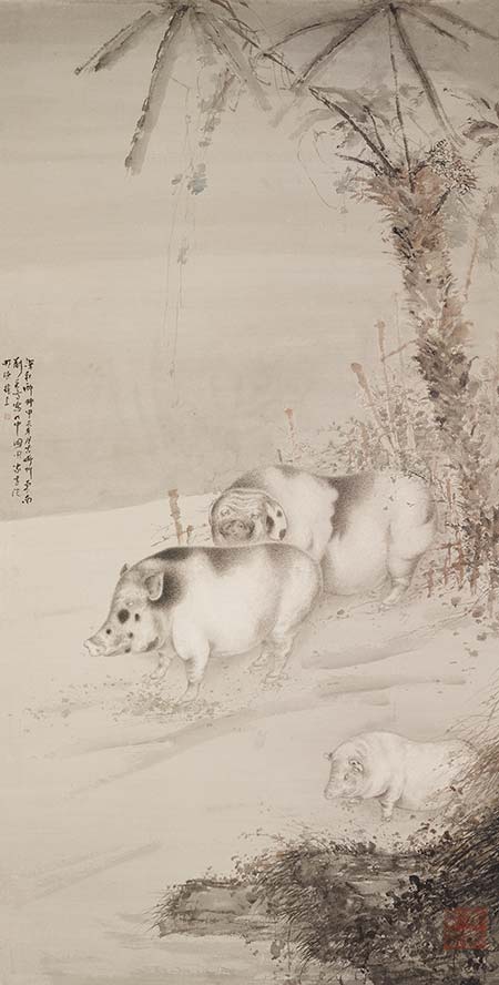 王穎生 《踱步之一》 絹本工筆重彩 200cm×125cm×3 1997年