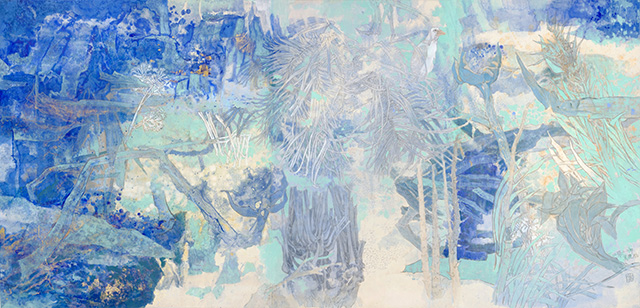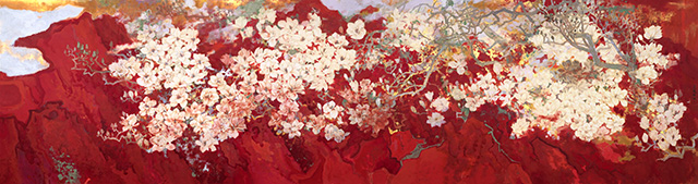 莫曉松 《飛花漫天游》 紙本重彩 99cm×209cm 2022年