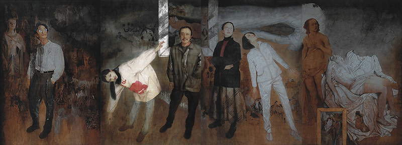 王穎生 《踱步之二》 絹本工筆重彩 200cm×135cm×4 1999年