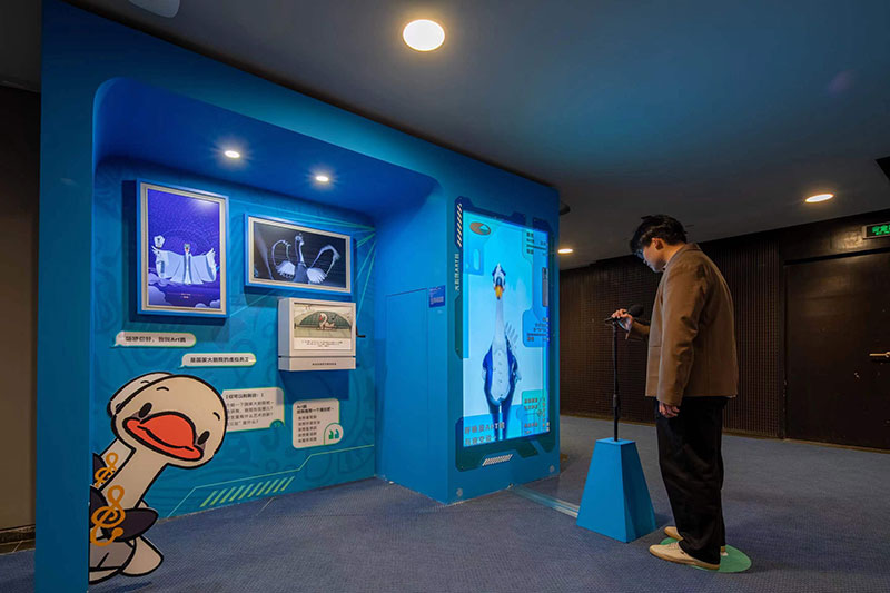 作品名稱:國家大劇院虎擬員工-ART 鵝 創(chuàng)作團隊:國家大劇院 某集體 ART+TECH 作品類型:AIGC虛擬人 創(chuàng)作時間:2024年 作品說明:國家大劇院虛擬員工 At 鵝,集合 AIGC 數(shù)字互動、國家大劇院 IP 形象展示、創(chuàng)意打卡區(qū)、沉漫互動裝置為一體,讓觀眾在展區(qū)內(nèi)可全方位與Art 鵝進行互動體驗。